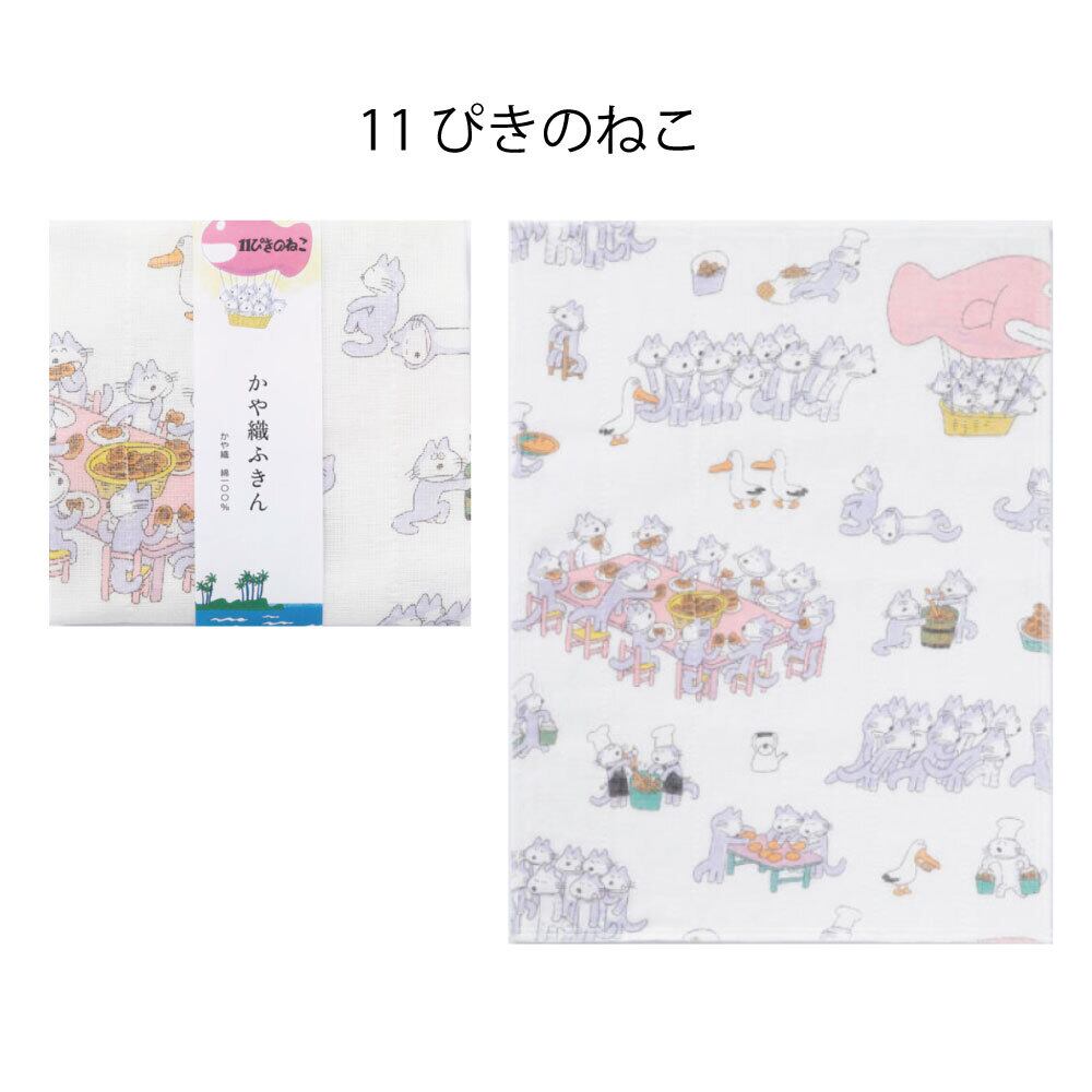 ■「11ぴきのねこ」・・とらねこ大将ひきいる11ぴきのねこたちの愉快な物語。3世代にわたって楽しまれているロングセラー絵本シリーズが、かや織のふきんになりました。