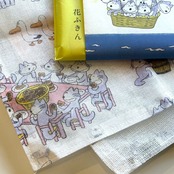 ( ※最後の写真は花ふきんの拡大写真です。「11ぴきのねこ」を撮影しています。ご注文のお間違えがありませんようお願いします。また、こちらは洗濯前の糊がついている状態になります。)