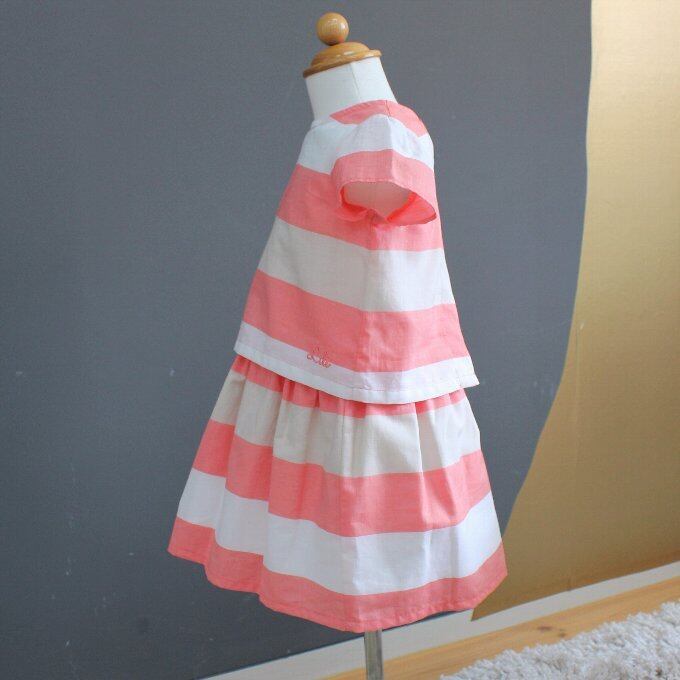 太いピンクと白、ベージュのボーダーがとても爽やかな印象のワンピース。3WAYになっていて、上のブラウスはTPOに合わせて着て頂けるようになっています。暑い日には1枚でさらっとカジュアルな雰囲気に。ちょっとお出かけの日にはブラウスを上から重ねて。ブラウスも単品でパンツやスカートと組み合わせて着て頂けます。