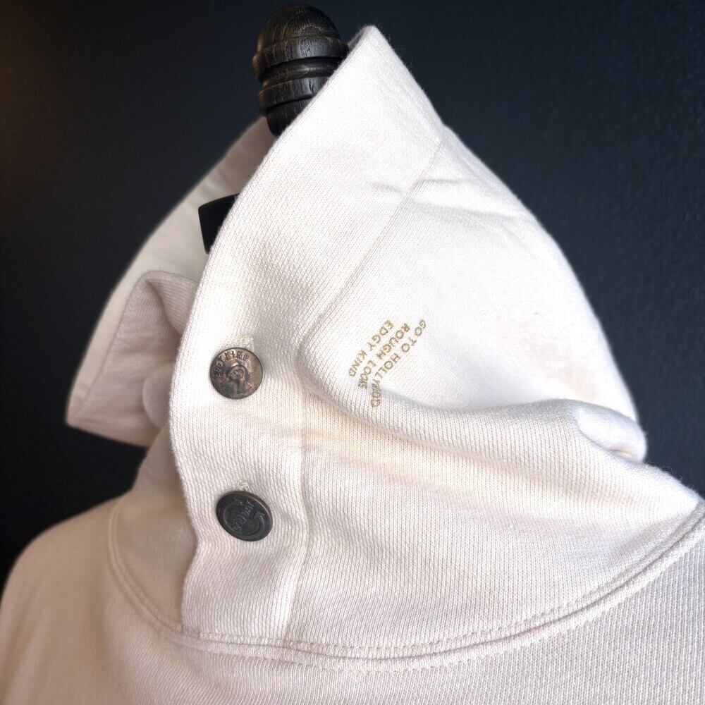 シンプルで上質な裏毛パーカ。今シーズンは何といってもフードにあしらわれた2種類のデザイン違いの金属釦。ビンテージ加工が施されて、アクセントになっています。横にプリントされた小さな文字「GO TO HOLLYWOOD ROUGH LOOKS EDGY KIND」(ラフでエッジの効いた感じ)の言い回しがピッタリなパーカです。