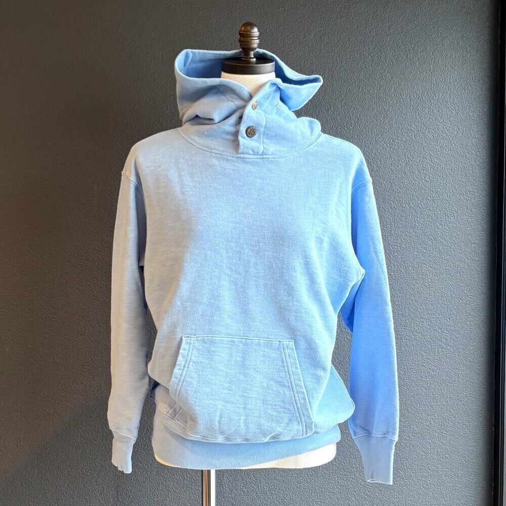 シンプルで上質な裏毛パーカ。今シーズンは何といってもフードにあしらわれた2種類のデザイン違いの金属釦。ビンテージ加工が施されて、アクセントになっています。横にプリントされた小さな文字「GO TO HOLLYWOOD ROUGH LOOKS EDGY KIND」(ラフでエッジの効いた感じ)の言い回しがピッタリなパーカです。