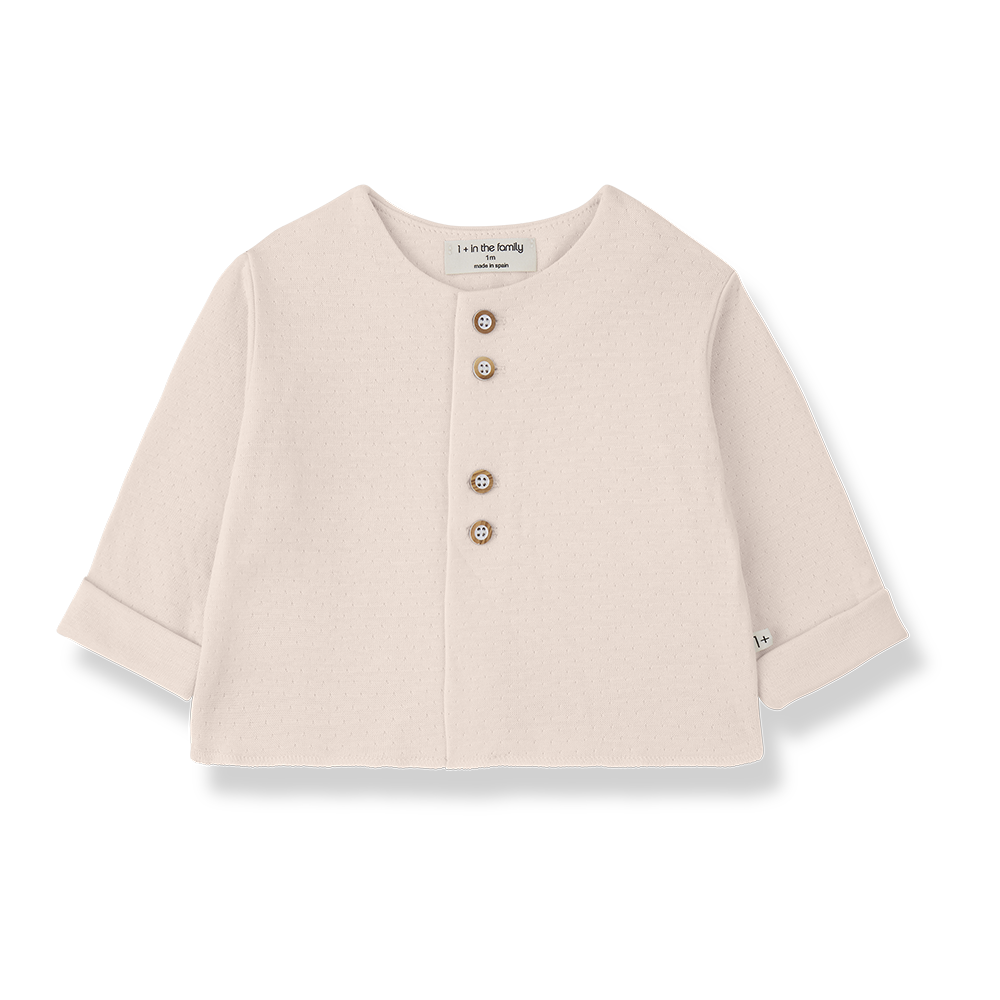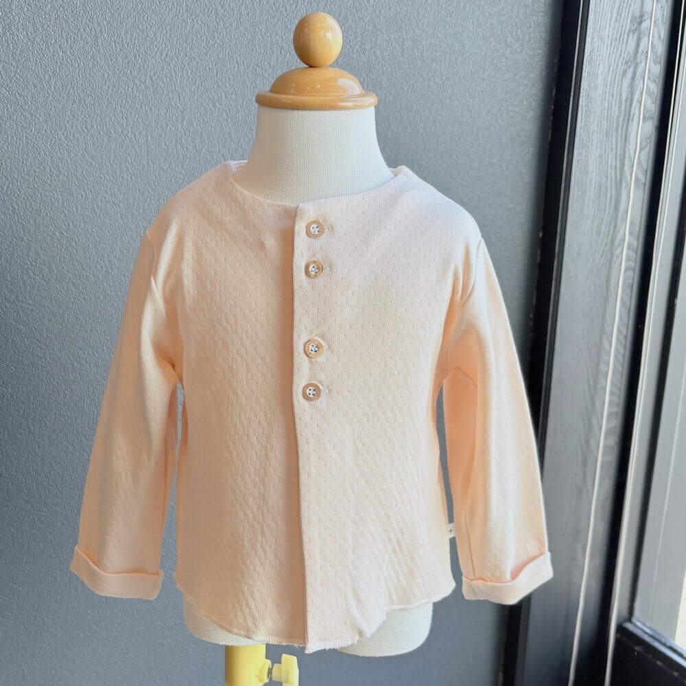 ふんわり優しいBlossomカラーのカーディガン。Cotton100%のダブルフェイスで、ふんわりとした気持ちの良い肌さわりです。木のボタンもナチュラルな印象に。Cottonの羽織はエアコンの効いた夏場にもとても重宝するので1枚あるととても便利です。
