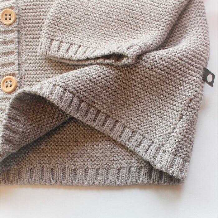肌さわりが良く、コットン100%のニットカーディガン。デイジーの花びらのような衿が個性的でとても可愛らしい印象に。合わせやすいグレーのカラー、程よく厚みのあるコットンカーディガンは、通年を通して使い勝手の良いアイテムです。(通常のサイズより少し小さめになります。サイズをご確認頂いてお手持ちのお洋服と比較してみて下さい。)