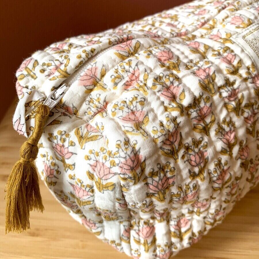 女性の大好きなポーチ。ママはおむつポーチとしても使えますし、旅行は勿論、お家でのお化粧ポーチとして、置いておくだけでライフスタイルも楽しくなります。内ポケットもしっかり両サイドについているので、小さなものはポケットへ。とても柔らかなコットンなので肌さわりがとても良いポーチです。
