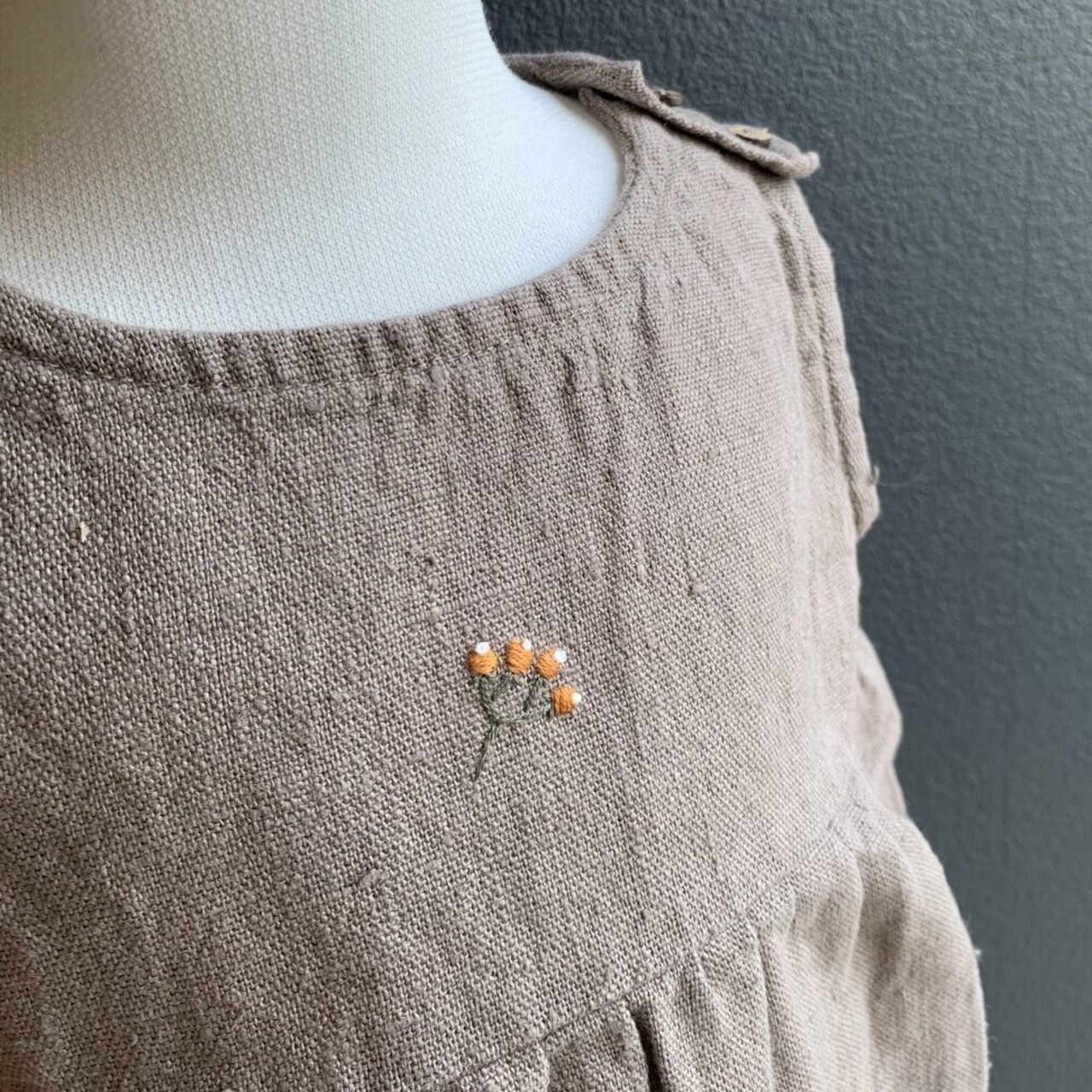 リネン特有の風合いと色使いがとても素敵なBabyロンパース。動物や植物お花の刺繍はどれも愛らしく、リトアニアの森や湖などの自然豊かな風景を想像させてくれます。愛らしいBittersweet Berriesの実が刺繍された素朴で上質なロンパース。サイズは1歳用なので、記念すべきハレの日用のお洋服としてプレゼントをしても喜ばれる事と思います。